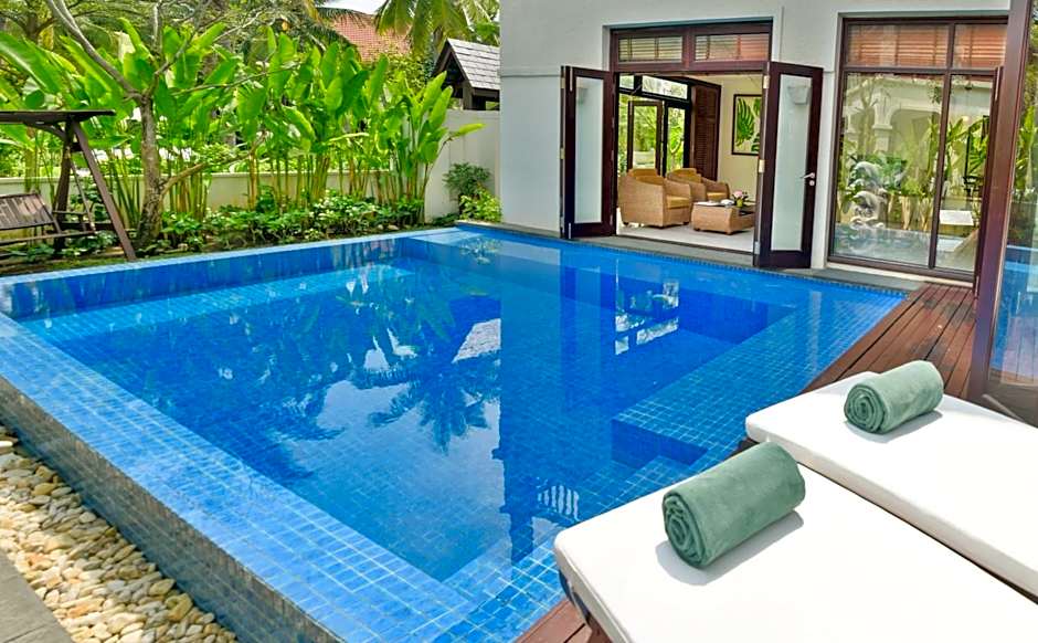 Offering pool views, two-bedroom villa features 2 bathrooms and a private pool. Also includes living and dining areas and a well-equipped kitchen with a stove, mini-bar and microwave.